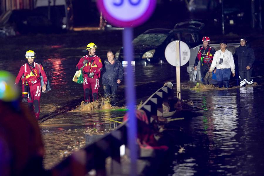 Reddingsdiensten vannacht aan het werk in Valencia.AP